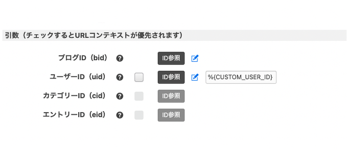 これにより %{CUSTOM_USER_ID} で UID が扱えるようになります。